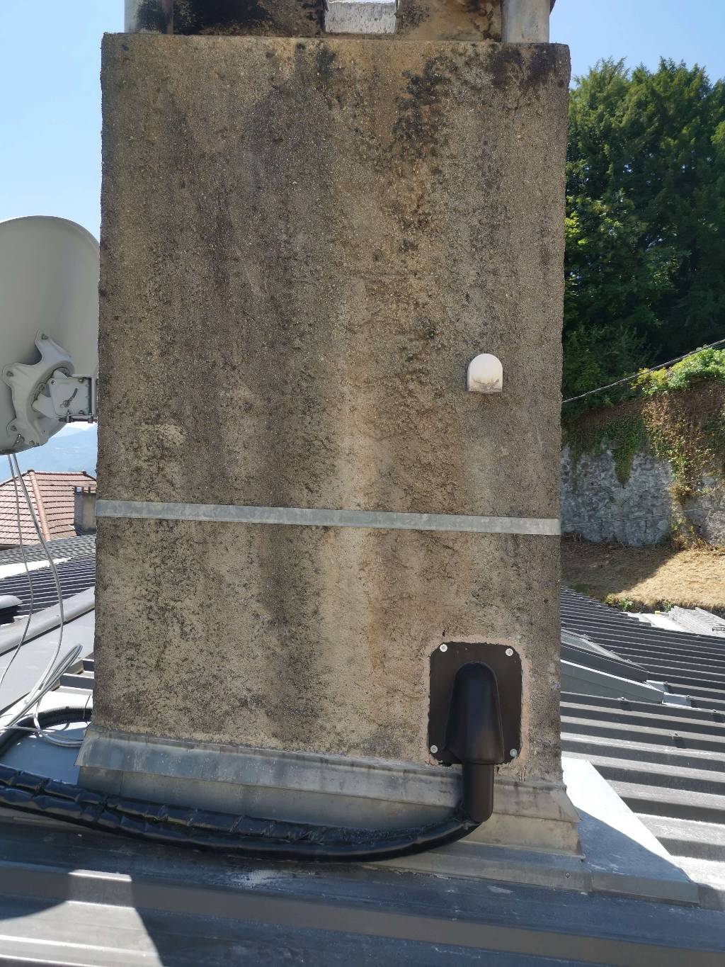 en surimposition sur une toiture en tuiles.